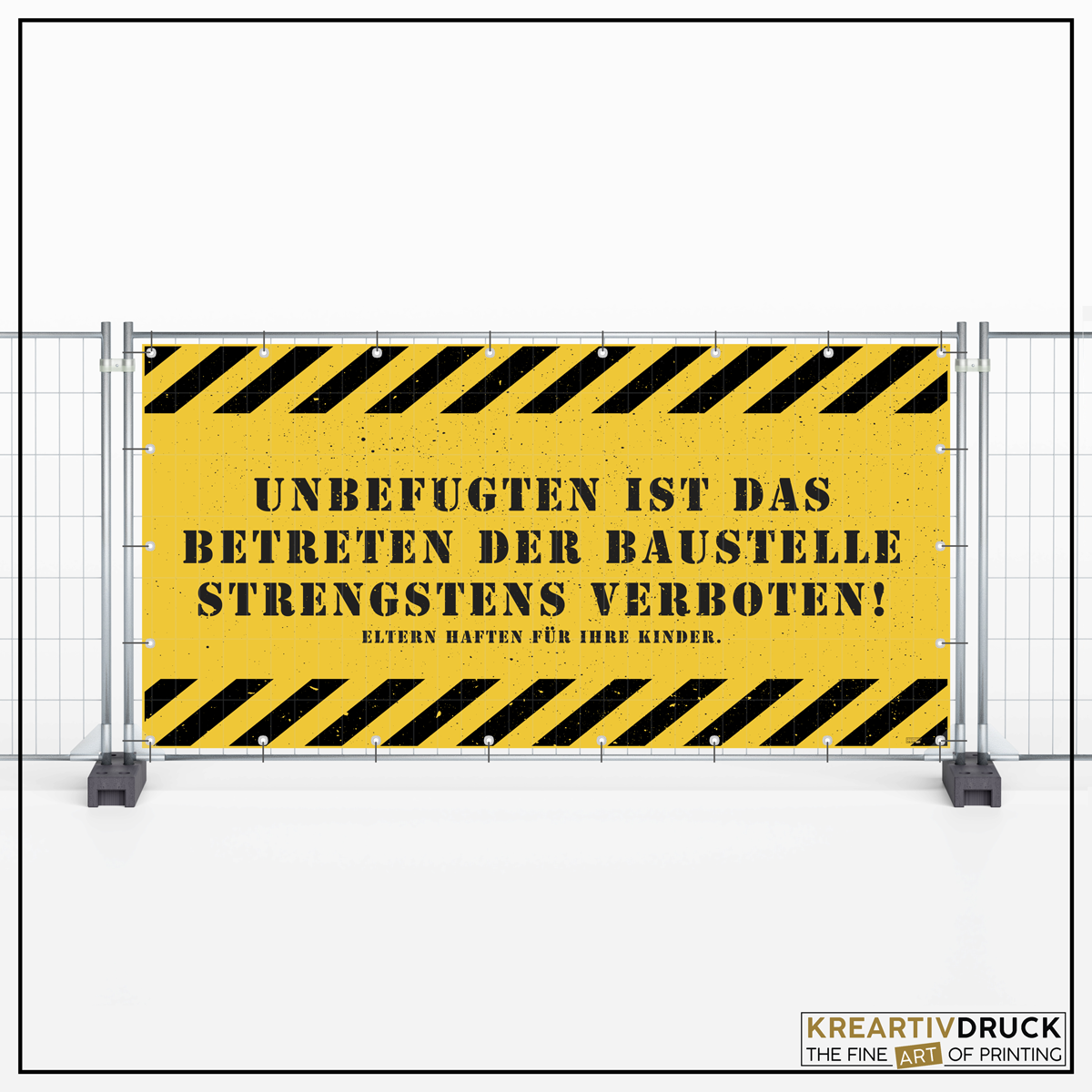 Bauzaunbanner mit dem Hinweistext "Betreten verboten"