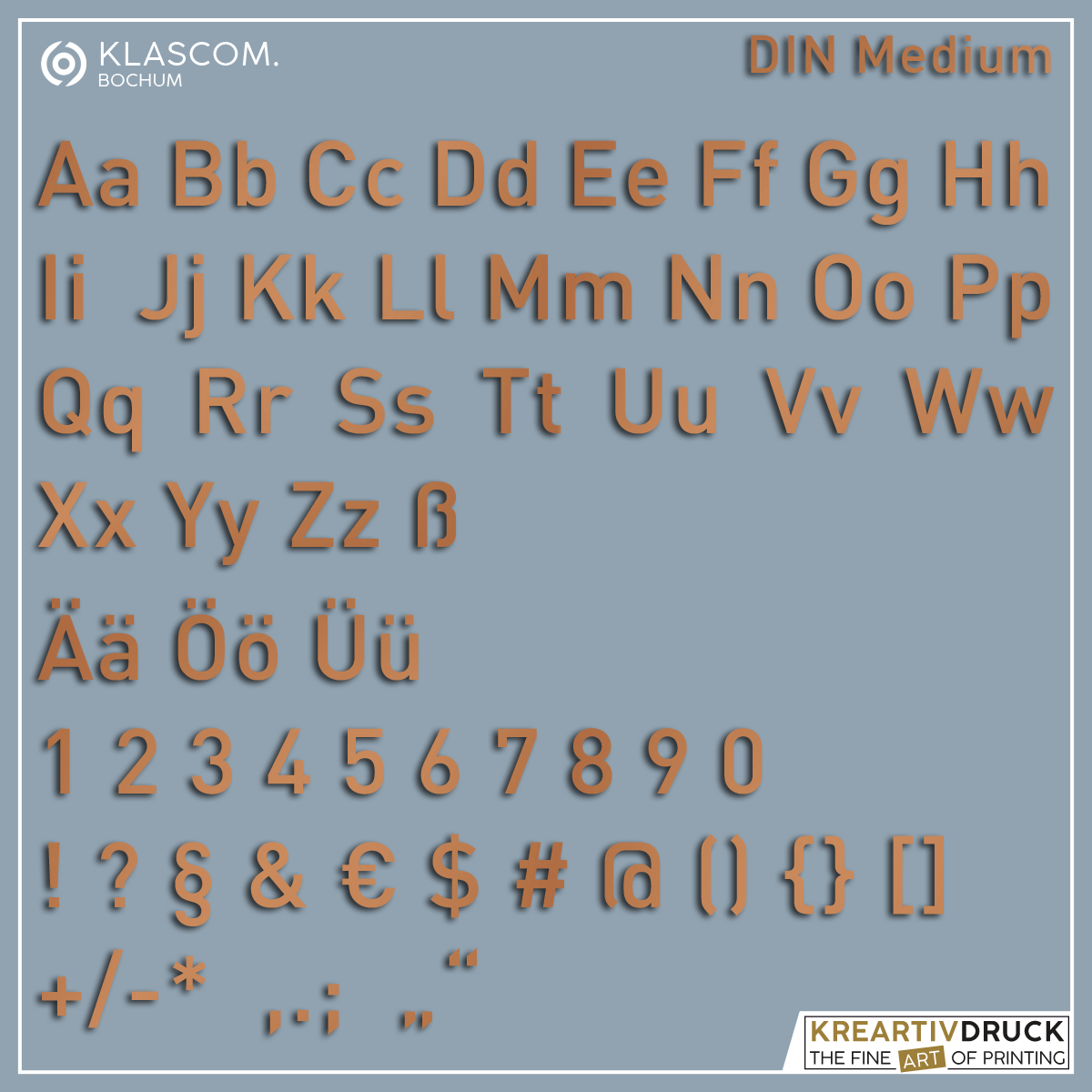 KREARTIVDRUCK liefert die Buchstaben, Zahlen oder Zeichen einsatzorientiert. Für eine verdeckte, scheinbar schwebende Wandmontage stehen optional gleich mehrere Befestigungsmöglichkeiten zur Auswahl, welche unterschiedliche Wandabstände ermöglichen. Die Befestigungspunkte werden auf Wunsch wahlweise beigelegt (Selbermacher) oder vom KREARTIVDRUCK-Team vormontiert werden. Auf Anfrage ist ebenfalls eine Vormontage auf Trägerplatten möglich.